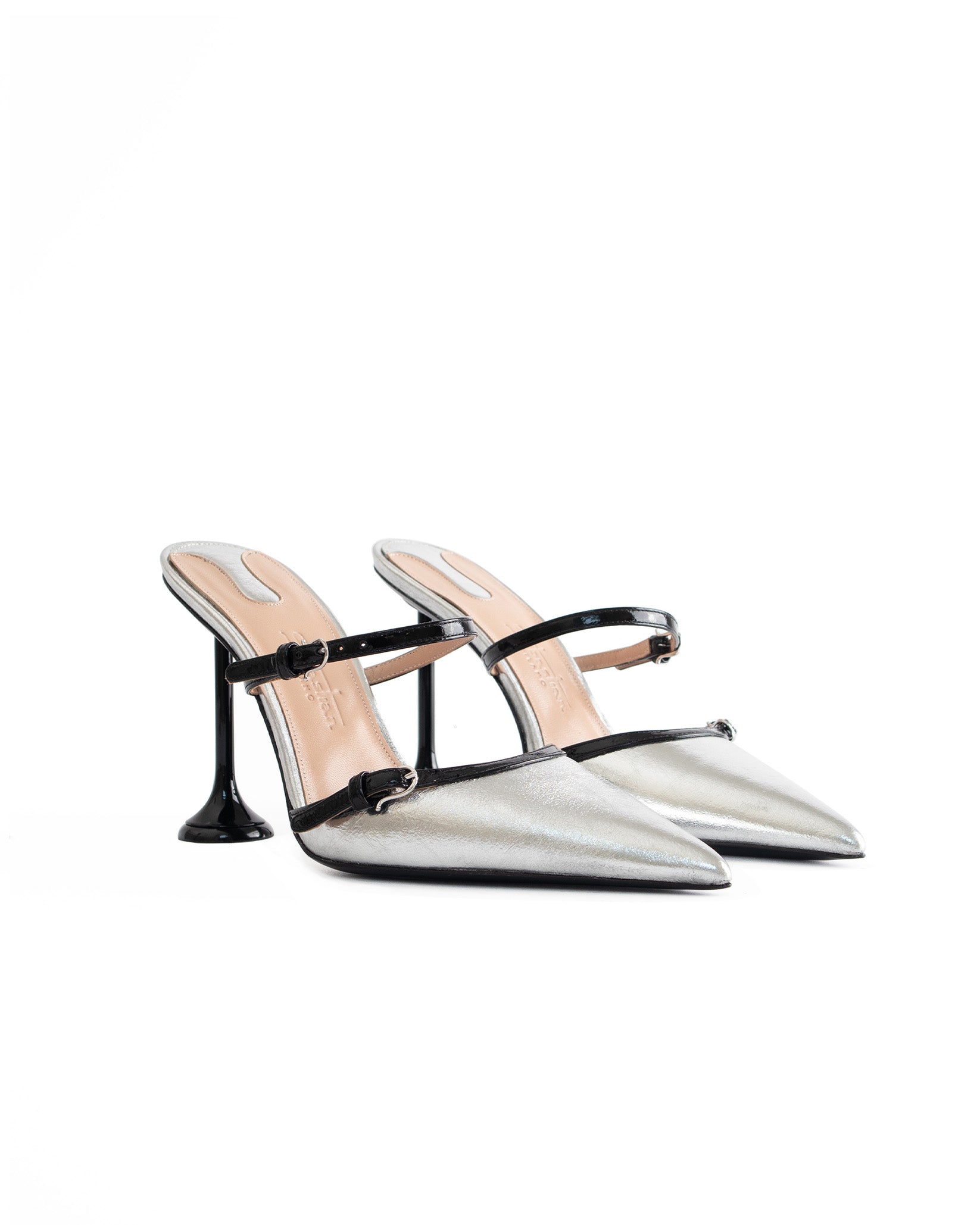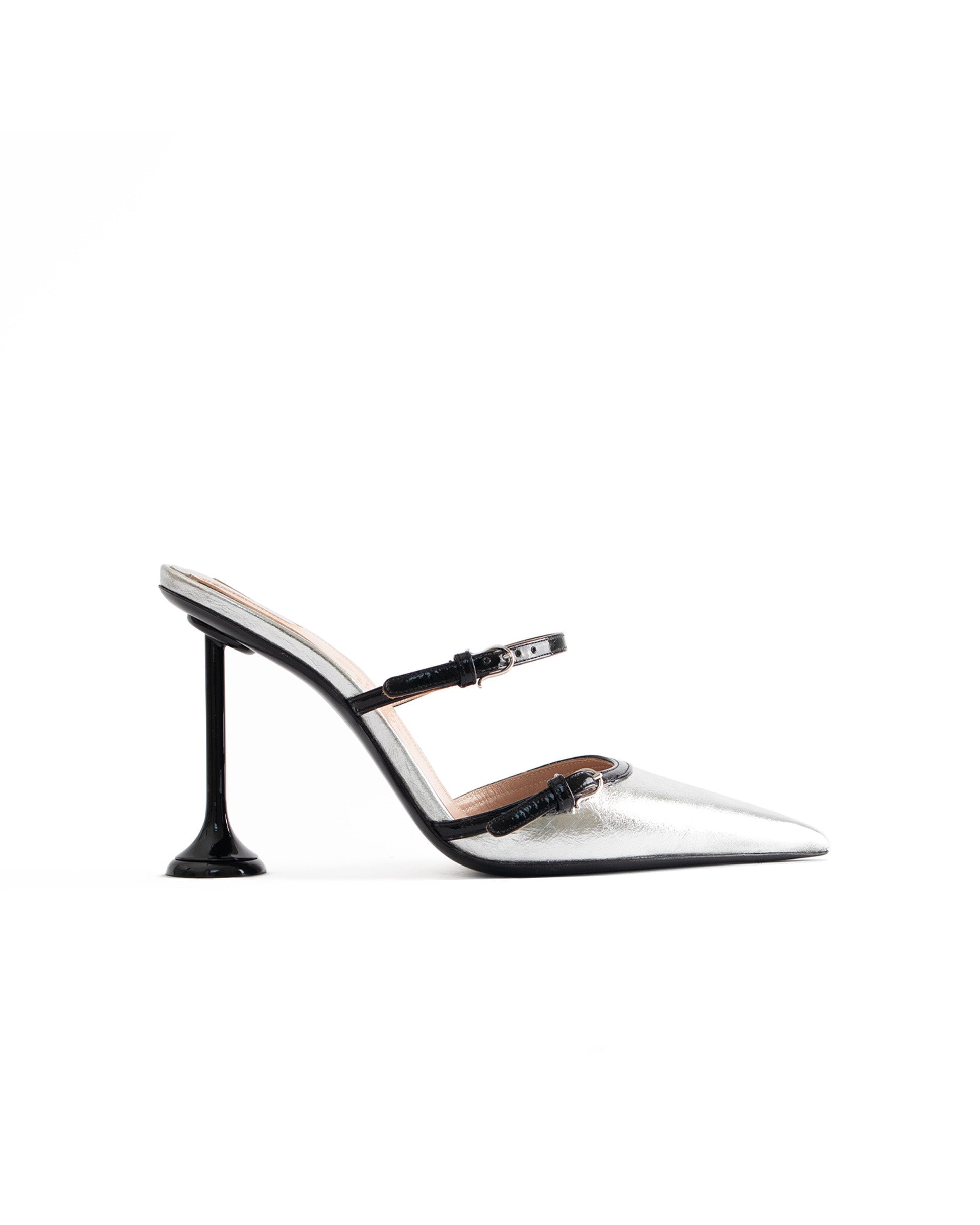- Tomaia: vernice argento e nero con texture