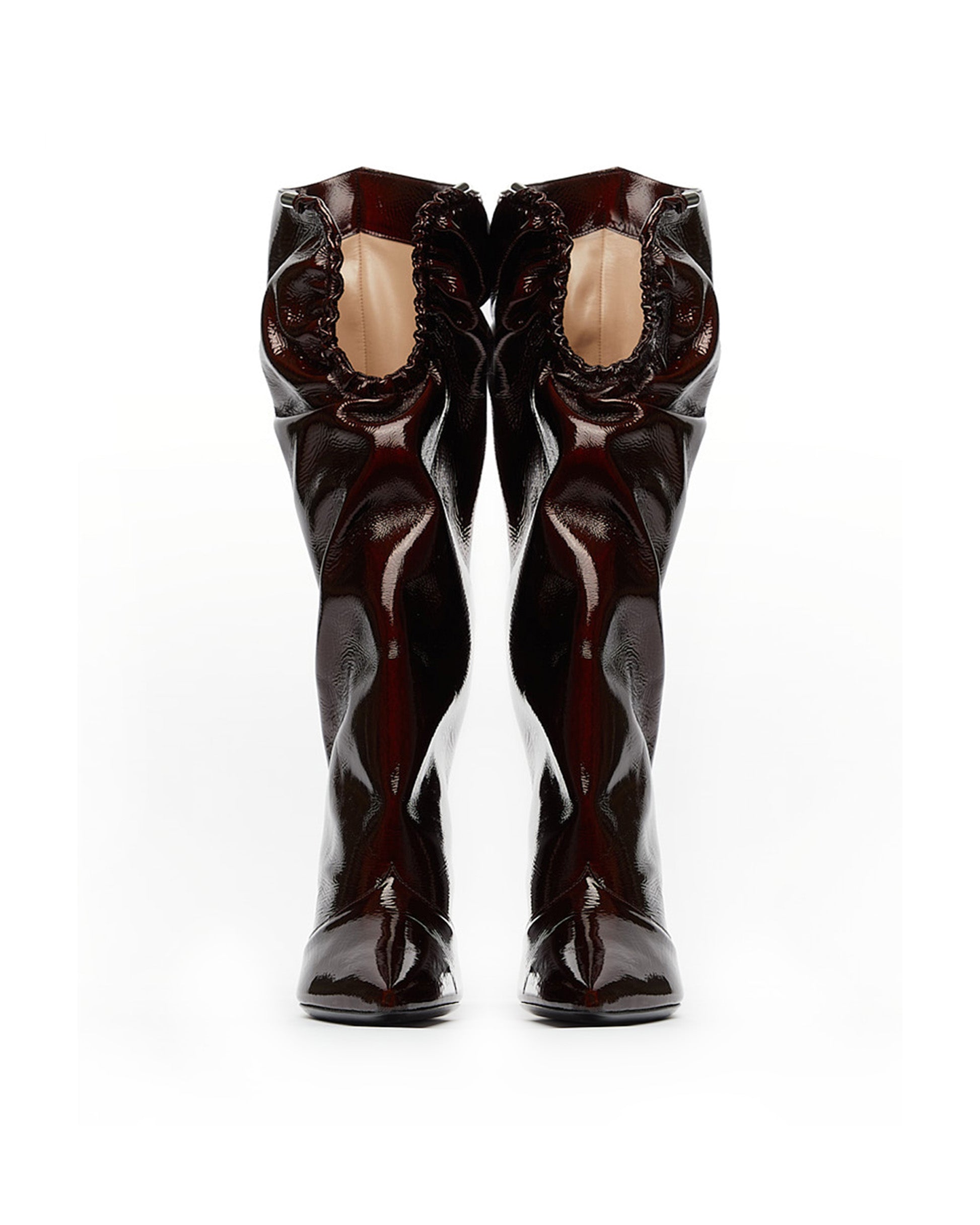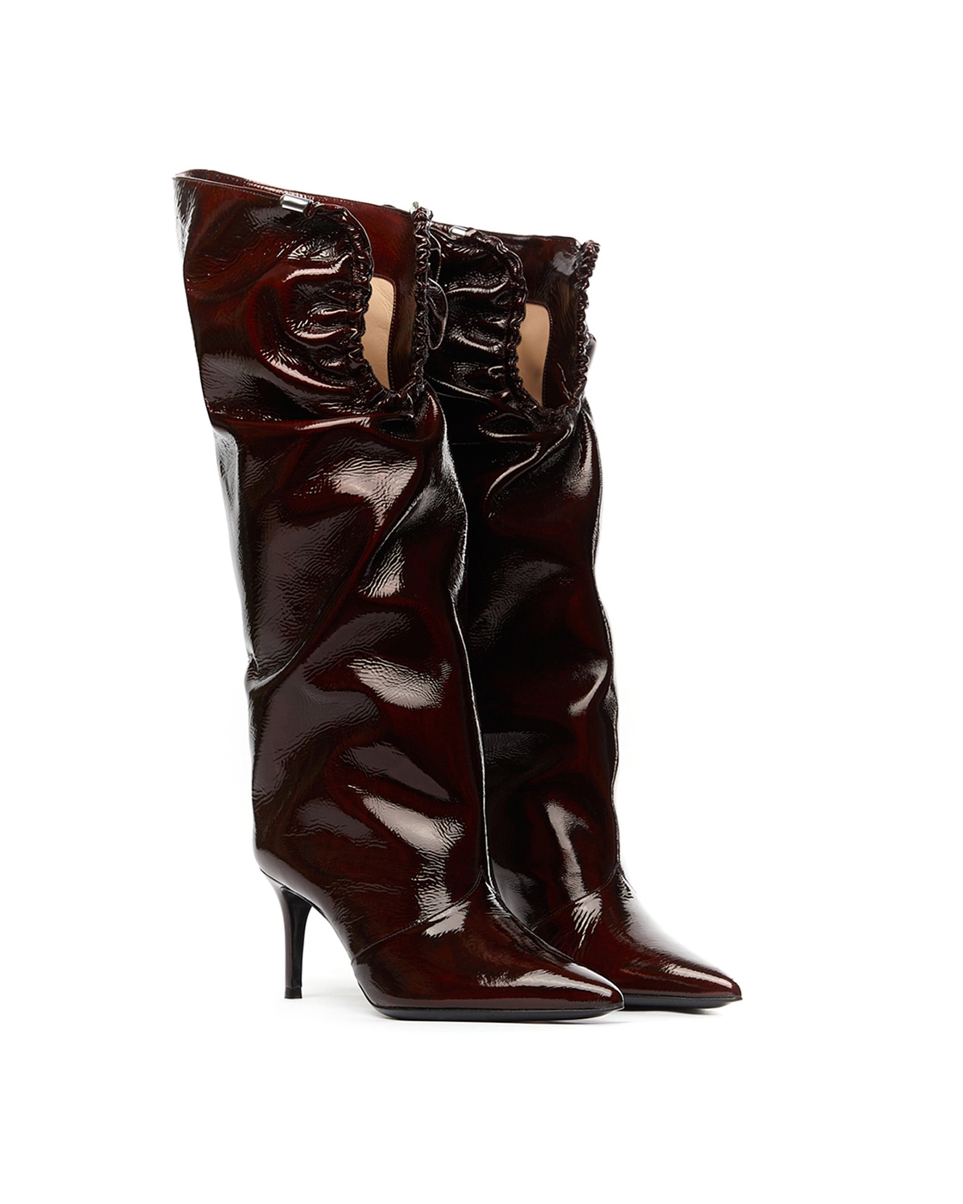 - Upper: burgundy textured illuminated patent leather